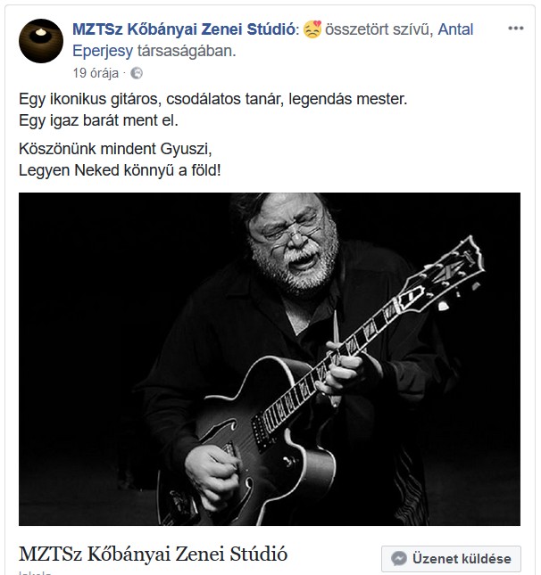 A Kőbányai Zenestúdió, ahol a zenész is tanított, így búcsúzik "Gyuszi bácsitól":