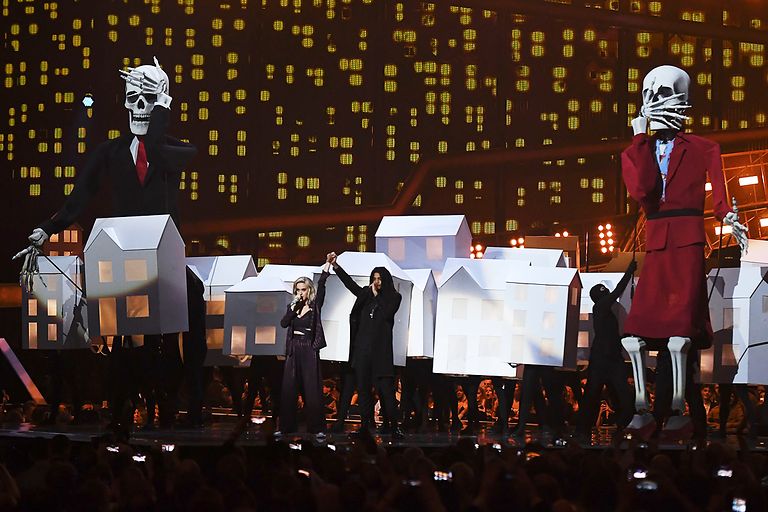 Az este folyamán fellépett még az említett Legjobb Brit Női Előadó díjat elnyerő Emeli Sandé, Bruno Mars, Katy Perry (aki nagy sikerű előadással szórakoztatta a közönséget, az énekesnő Chained To The Rhythm című új számát adta elő két óriási csontváz társaságában, amelyeket Donald Trump amerikai elnöknek és Theresa May brit kormányfőnek öltöztettek) és Robbie Williams is. A karácsonykor elhunyt George Michael előtt is lerótták tiszteletüket a sztárok. "Csodálatos hangja örökké velünk marad, mintha ajándékot kaptunk volna" - mondták az emlékét felidézve korábbi együttese, a Wham! tagjai. Chris Martin, a Coldplay énekese pedigA Different Corner című számát adta elő a sztár hangfelvételével duettet énekelve.