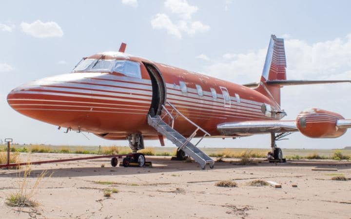 A piros színű 1962-es Lockheed Jetstar kisgépben nincs motor és pilótafülkéje is alapos javításra szorul. A repülő belső dizájnját azonban maga Elvis tervezte: az utasteret piros bársonyülések és szőnyeg teszik kényelmessé. A gép évtizedek óta háborítatlanul áll Roswellben - számolt be róla a The Daily Telegraph című brit lap.