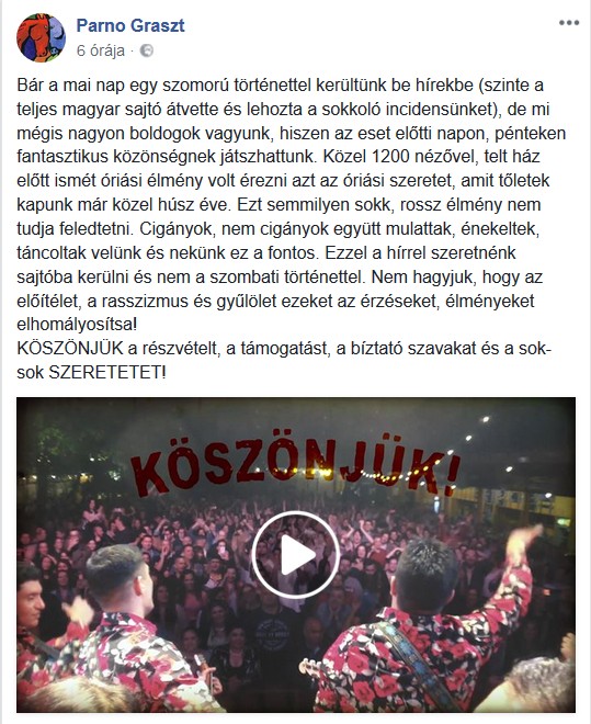 Hétfőn este kis Grófo ad majd ugyanott koncert. Ezek szerint cigányoknak mulattatni lehet, mulattatni viszont már nem.
