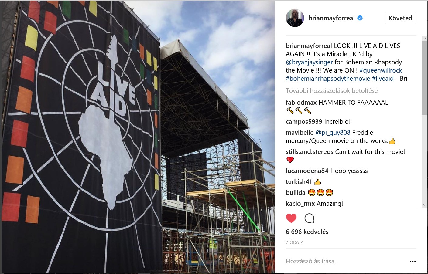 Ezt Brian May Instagram-oldaláról tudhattuk meg, aki boldogan tette közkinccsé a forgatáson készült fotót.