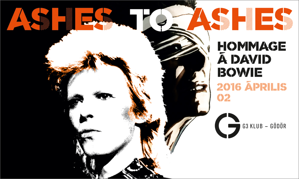 Április másodikán, a Gödör Klub színpadán színészek és zenészek közösen szólaltatnak meg többek között olyan különlegesen erőteljes dalokat, mint a Life on Mars, Rebel Rebel, Space Oddity, Heroes, Rock’nroll Suicide, Lazarus, Blackstar. Jordán Tamás színművész különleges meglepetéssel készül és persze az Ashes to Ashes c. dal is elhangzik majd.