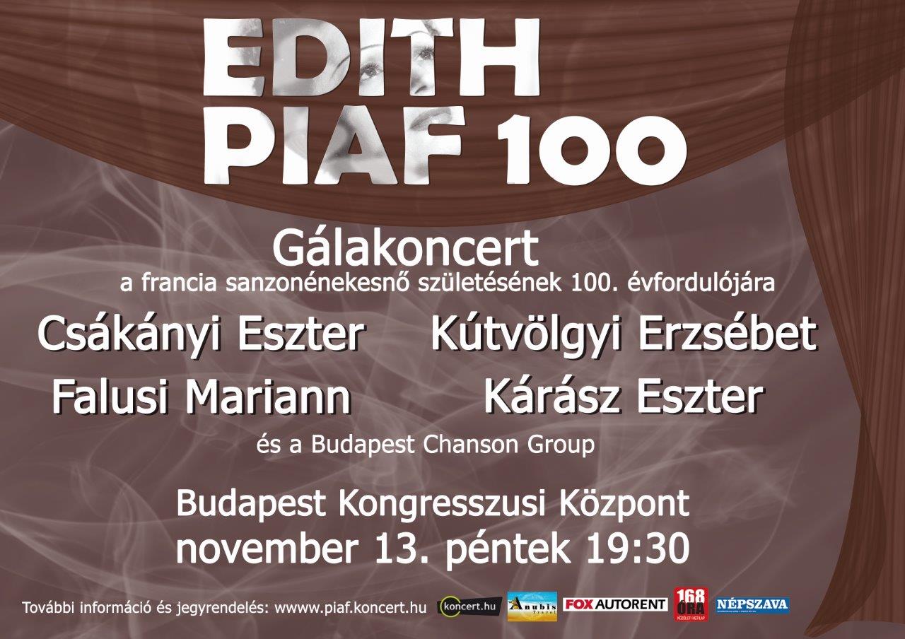 "Egy nő kiáll a színpadra, egyszerű fekete ruhában, kicsi és törékeny. Megszólal a zene és a francia dal a lélekig hatol. Csak a nekrológokból és tanulmányokból tudhatjuk meg, hogy magáról énekelt. Ő volt Edith Piaf” - írják a szervezők a koncerttel kapcsolatban, melyen többek között a Padam, Padam…, a Milord vagy a Nem bánok semmit sem is felhangzik majd. Edith Piaf születésének 100. évfordulója alkalmából Csákányi Eszter, Kútvölgyi Erzsébet, Kárász Eszter és Falusi Mariann állít az énekes-legendának emléket.