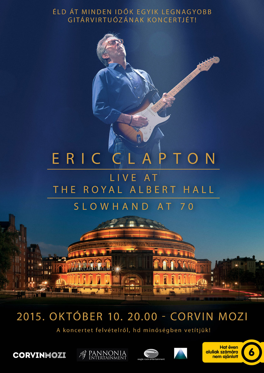 Az emlékezetes estéről készült, kimagasló minőségű koncertfilmet Slowhand at 70 – Eric Clapton Live at the Royal Albert Hall címmel most világszerte mozivásznon láthatják a rajongók. A 4K-ban rögzített kép és a több sávon felvett, 5.1-ben kevert térhatású hang kitűnően visszaadja a Royal Albert Hall különleges akusztikáját és a zenészek utolérhetetlen hangzásvilágát, olyan élménnyé téve a mozivásznon látható műsort, amely megközelíti az eredeti helyszínen átélt hangulatot.