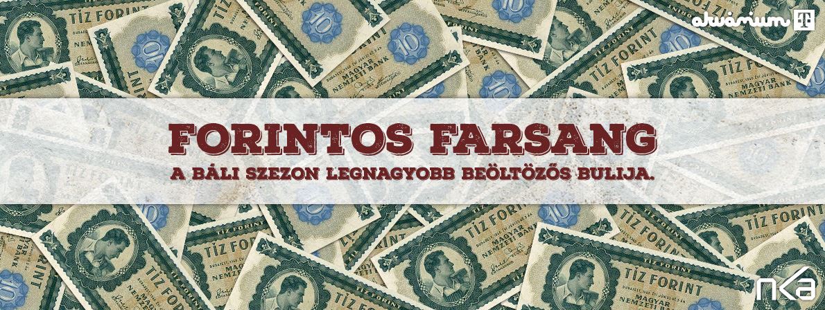Farsangkor bárki lehetsz, és ezt a bárkit vidd el február 24-én az Akvárium Klubba. Az este kezdetén mutasd be a szakértőkből álló zsűrinek - azaz Dombóvári István humoristának, Mc Columbo énekesnek és Koczka mesterfodrásznak. A zsűri által legjobb 5 jelmezes a fergeteges koncert közben mérettetik majd meg, ahol a közönség hangereje dönti el, ki viheti haza a 100.000Ft (1. helyezett), az 50.000Ft (2. helyezett) és a 20.000Ft (3. helyezett) összegű pénznyereményt