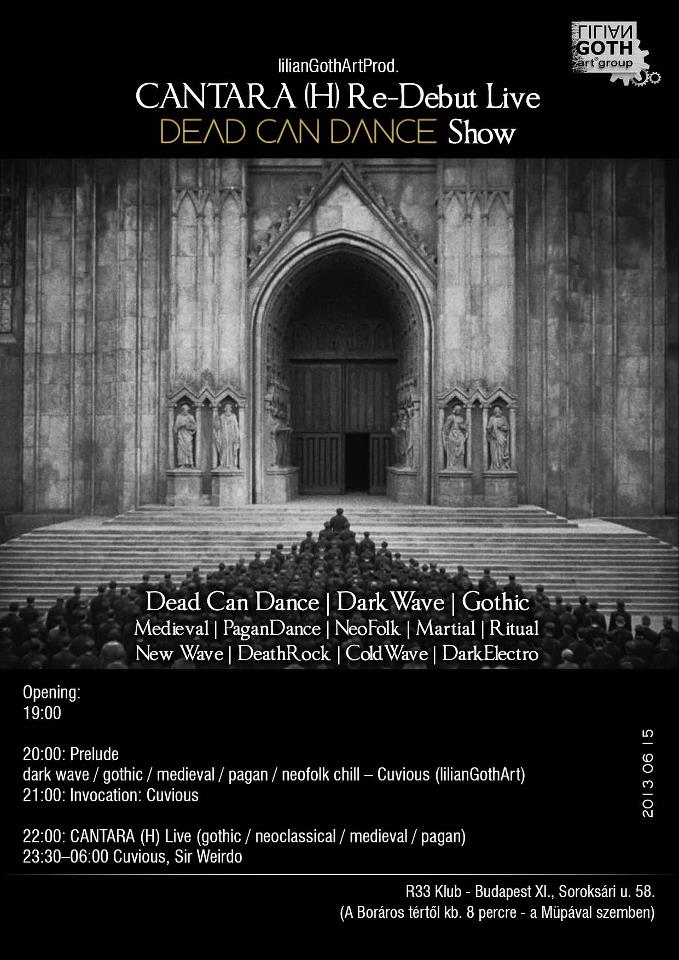 A Molnár Lujó vezetésével 2004-ben alakult CANTARA - 3 év kihagyás után, repertoárját sok új dallal bővítve - június 15-én újra színpadra áll. Molnár Lujót sokan ismerhetitek a VHK-ból, amelynek régóta oszlopos tagja. A Cantara, Lujó saját zenei vállalkozása, mely a mára már igen tágan értelmezhető gothic irányzat egyik hazai különlegessége. A zenekar saját dalaival már 2004 óta koncertezik. A Dead Can Dance nyomdokán elindulva írta első dalait, de sokat merített az archaikus népzenéből, a népi muzsikából, a középkori zenei miszticizmusból és a történelmi korok zenéiből is. Ezt ötvözi a modern klasszikus zenei elemekkel.