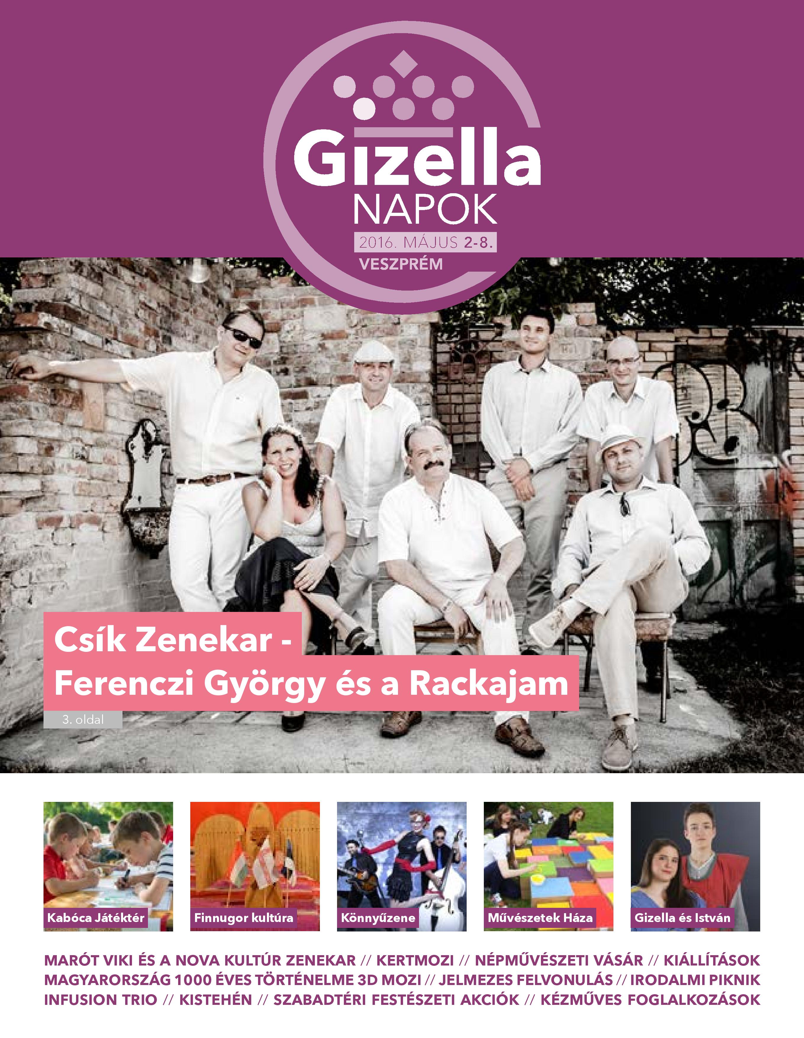 A programok bemutatására a Gizella Napokat koordináló Veszprémi Programiroda – rendhagyó módon - egy újságot talált ki szóróanyagnak, mely az idei év programkínálatának törzsét biztosító városi intézmények, szervezetek Gizella Napokhoz való kötődését, múltját részletezi és idézi. A „vezetőként” is szolgáló, középről kivehető programkínálatot, időrendi sorrendben, a helyszíneket színekkel megkülönböztető bontásban tálalják, ezzel segítve a bőséges repertoárban történő könnyebb eligazodást.
