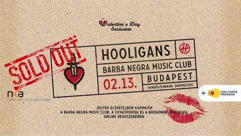 A huligánok Valentin-napi ünnepségre a Barba Negra Music Clubba invitálnak mindenkit, hogy megcsodáljuk az 1 négyzetcentiméterre eső tetoválások számának rekordját, és persze kapjon mindenki a Hooligans-érzésből és a jó dalokból.