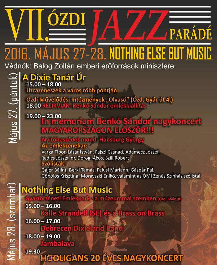 A szombati nap mottója „Nothing else but music”, amely már önmagában is sokat sejtet: az Ózdi Ipari Parkban a nap folyamán fellép Kalle Strandell és a Brass On Brass, a Debrecen Dixieland Band, a Jambalaya és este a záró nagykoncert pedig a Hooligans együttes 20 éves jubileumi koncertje lesz, amely az évforduló kapcsán sok meglepetést tartogat a rajongóknak.