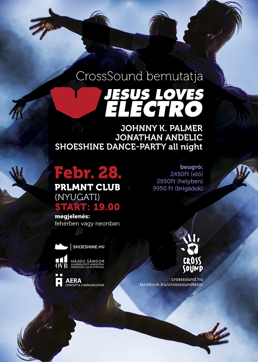 A ShoeShine-nal közösen szervezett bulin a Jesus Loves Electro előtt Andelic Jonathan és zenekara nyitja az estét, akik Magyarországon egyedülálló gospel dicsőítéssel készülnek. Utánuk RnB és soul szerzeményeivel Johnny K. Palmer lép fel, aki Budapesten született egy jamaicai lelkipásztor legidősebb fiaként. A koncertek után a ShoeShine partysorozat rezidens DJ-i (Huszár, Bazsik, Silversound) tolják hajnalig a bulit.