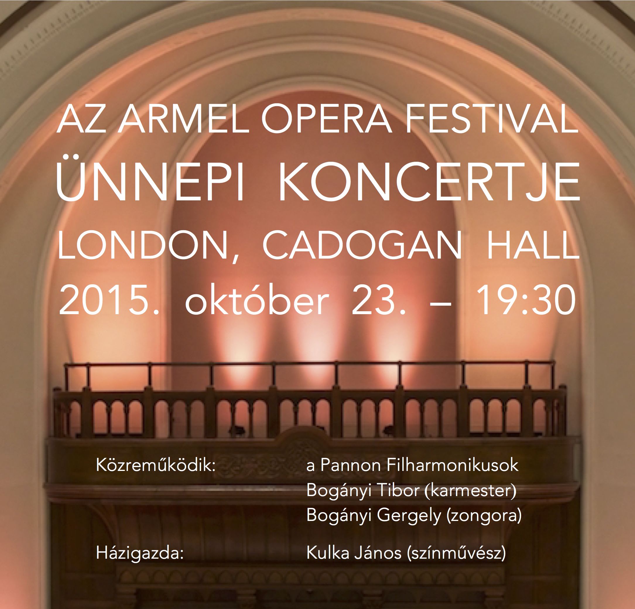A budapesti Armel Opera Festival sok szeretettel várja azokat a Londonban élő komolyzene-kedvelőket, akik az 1956-os forradalom és szabadságharc évfordulóján egy kis “hazai szépséget” szeretnének csempészni az ünnepükbe október 23-án. A Pannon Filharmonikusok által tolmácsolt műsor házigazdája Kulka János színművész. Zongorán Bogányi Gergely, Kossuth-díjas művész működik közre, a zenekart pedig testvére, a generációjának egyik legjobbjaként számon tartott Bogányi Tibor vezényli.