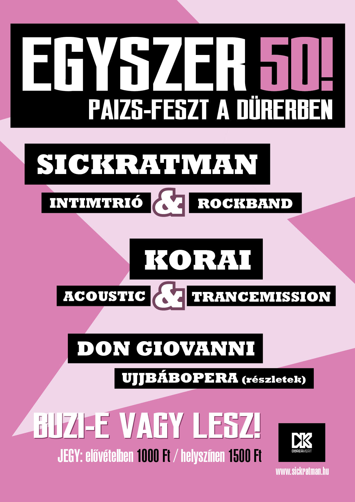 Jegyár: elővételben 1000,- Ft, helyszínen 1500,- Ft