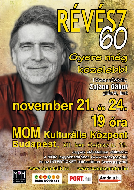 A Révész 60 – Gyere még közelebb! című turné Zajzon Gábor lantművész-gitárossal együtt adott intim hangulatú koncertjei ősztől újra hallhatóak lesznek. Régi Generál és Piramis számok mellett a szólóalbumok dalaival, valamint vadonatúj szerzeményekkel. Budapesten a MOM Kulturális Központban lép fel, méghozzá két este is, november 21-én és 24-én 19 órától.