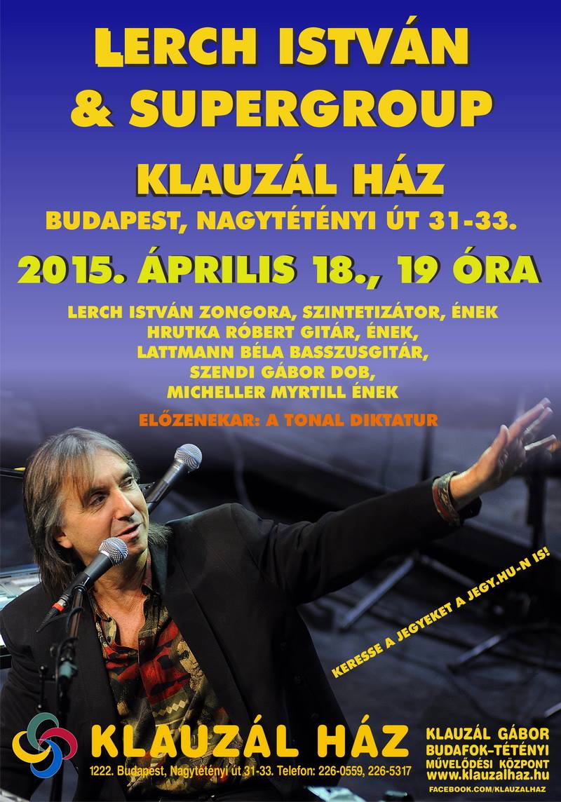 Szombaton este, április 18-án 19 órakor a Klauzál Ház Bujtor István színháztermében a „LERCH ISTVÁN & SUPERGROUP” ad koncertet. Az előzenekar „A TONAL DIKTATUR”, a koncerten a zenekar a Kraftwerk- és Depeche Mode hangzásvilágát idézi majd fel.