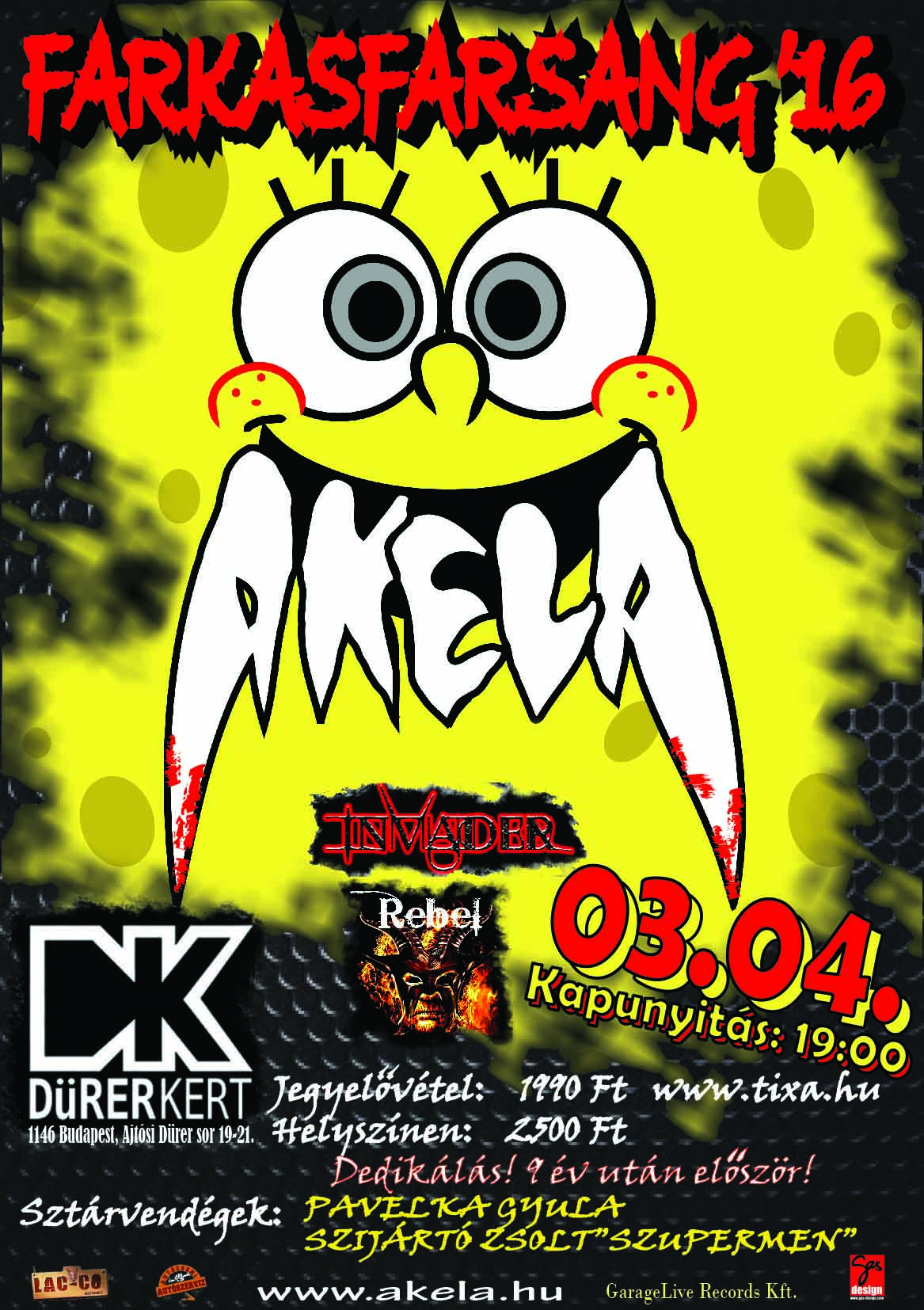 Gond tehát egy szál se, hiszen a jól megszokott Akela-féle " ereszd el a hajamat" parti most még fergetegesebbnek ígérkezik mint az előző években, hiszen rengeteg meglepetés vendéggel és ajándékkal, valamint dedikálással is kedveskednek a metál farkasai a falkának. Tehát az Akelával pacsizás sem marad el, és sör meg bor is lesz elég. Az álarcban, vagy éppen különleges jelmezben érkezőket pedig ez alkalommal is érheti néhány rémisztően izgalmas meglepetés.. Felkészültetek?