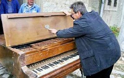„Mi ingyen kaptuk és ingyen adnánk oda valakinek, aki felelősséget érez iránta és képes róla gondoskodni" - nyilatkozta a Szabadságnak Nagy Albert református lelkész, aki szerint több ezer euróba kerül a hangszer megjavítása. A zongora tetejének belső felén gyöngybetűs feliratú kis plakett tanúsítja: