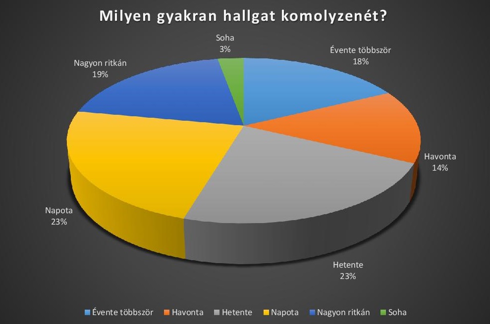 Bartók és Kodály népe ma is fogékony a komolyzenére – legalábbis ezt tükrözik a Budapesti Fesztiválzenekar és az Index online kutatásának eredményei, amely bár nem reprezentatív – így a magasabb iskolai végzettségűek és általában a zenekedvelők felülreprezentáltak benne – a szokatlanul magas számú, 18 ezer válaszadónak köszönhetően ugyanakkor az eredmények mindenképpen tanulságosak.
