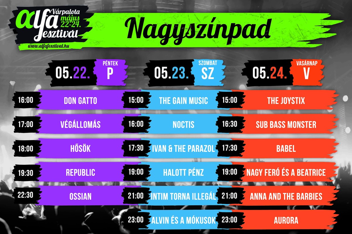 A továbbiakban nehéz kiemelni a műsorból egy-egy bandát: az Intim Torna Illegál, a Halott Pénz vagy az Ivan & the Parazol, a fiatalabb rajongói szívek ezreit meghódító zenekarok és a vérbeli rock zenészek fognak osztoznak majd a hétvégén az Alfa színpadán