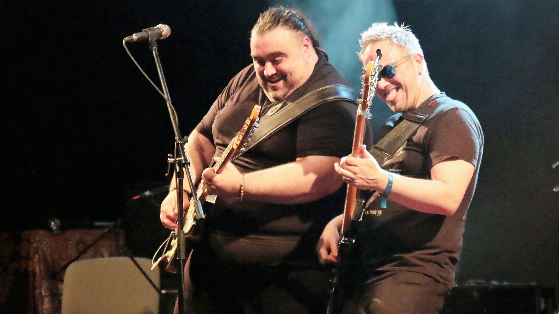 Visszaértünk viszont a paksi fesztiválon már vagy 10 éve is részt vevő és külsőre mit sem változó holland Julian Sas műsorára (ahol rájöttünk, hogy a homlokra kötött bandana nem takarja a fejtetői kopaszodást), eleinte olyan volt, mintha kissé sokat hallgatta volna Bencsik Samu életművét, bizonyos dalokra simán rá lehetett énekelni pl. a P. Mobil Rockóberét vagy a Menj továbbot. Aztán valami eszméletlen gitártekerésbe kezdett az úriember nagyjából a Malmsteen-féle „Nézd, hány hangot tudok lefogni 1 másodperc alatt!” elgondolás jegyében, ami biztos van, akinek bejön, nálam viszont inkább valami öncélú, ámde értelmetlen gitárnyúzásnak minősül. Ráadásul maratoni hosszúságú dalokat játszottak újabb zenei ötletek nélkül, időnként úgy tűnt, mintha elfelejtették volna a dal végét, ezért nem tudják befejezni, és most addig játsszák újra a többi részt, amíg eszükbe nem jut. A vége felé azért csurrant-csöppent egy kis gyors rock and roll is (mármint nagyjából az elvisi értelemben vett változat), ami legalább valamennyire felpörgette az addigra leülő hangulatot (ekkorra már eléggé megfogyatkozott a közönség az ESZI-csarnokban, 100-nál biztosan nem voltunk többen).