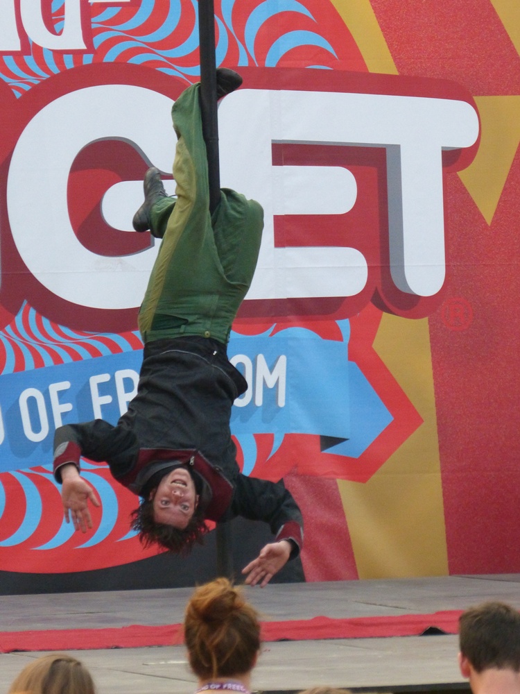 A francia Akoreacro újcirkuszi társulat műsora viszont lélegzetelállító volt. Sajnos az előadás alatt képeket nem készíthettünk, de higgyétek el, zseniális volt a program! A 11 fős társulatnál az volt az érzésem, hogy felvételi követelmények elő a volt írva a legalább 10 éves aktív artista múlt, és a minimum 3 hangszeren való zenélési képesség. Emellett tökéletes színészi munkát nyújtottak, és az egész produkció úgy volt összerakva, hogy a közönséget is belevették a játokoba. Én eleve nagyon kedvelem az újcirkuszi műfajt, és ennek hazai helytartóit, a Recirquel társulatot, de azt kell mondanom, látva a franciák produkcióját, van még hova fejlődniük. Ami nekem nagyon tetszett, a különböző hihetetlen akrobatikus mutatványok mellett, hogy élőben zenéltek, és a zenészek egyben artisták is, akik váltogatják egymás közt a hangszereket. Az már csak hab volt a sörön, hogy az előadás végén mindenkit meghívtak egy pohár szomjoltóra a sátor előterében, miközben a társulat tagjai húzták a talpalávalót a mulatozáshoz. Mindenkinek ajánlom, ha arra jár, nézze meg az előadást, ebben biztosan nem fog csalódni!
