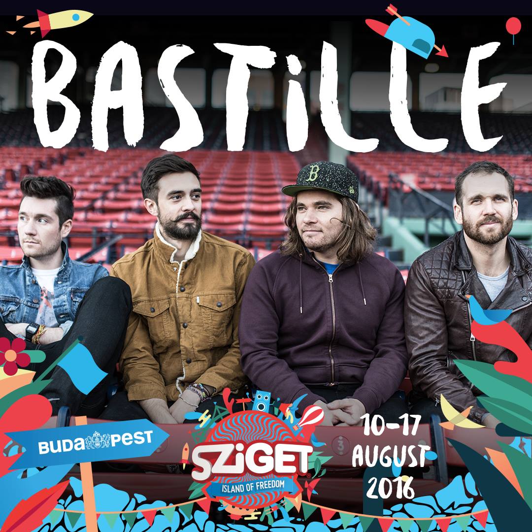 Az ifjú brit sztárzenekar, a Bastille legújabb dalaival érkezik újra a Szigetre, a Nagyszínpad kora esti sávjába. Megnyerő és intelligens indie- és szintipop zenéjükért jó pár millió fiatal rajong szerte a világban, több mint 8 millió lemezt adtak el Nagy-Britanniában és Amerikában, jelölték őket a legrangosabb zenei díjakra. A londoni kvartett már régóta dolgozik az új lemezen is, 2016 augusztusában – az olyan klasszikusok mellett, mint a Pompeii vagy az Of the Night - már biztos, hogy a Sziget közönsége is ismerni fogja az új dalokat.