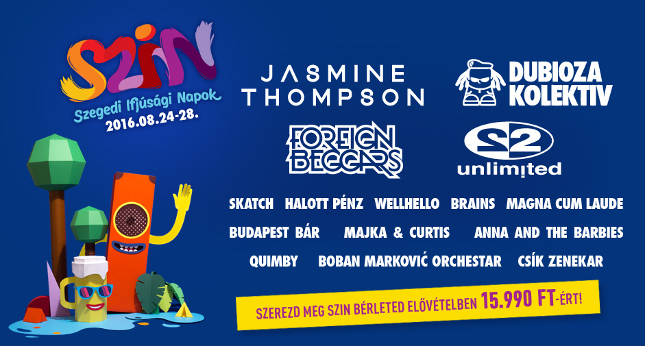 Es most nézzük, mit kínál cserébe a SZIN. Az augusztus 24-i nyitónapon az Akkezdet Phiaitól a Wellhelloig változatos a kínálat, benne a Halott Pénz, a Bëlga, a Hősök, Majka & Curtis, a Vad Fruttik vagy Szabó Balázs Bandája, hogy csak néhányat említsünk. Augusztus 25-én lép SZINre a Honeybeast, a PASO, a Magashegyi Underground, az Ivan and the Parazol, vagy a friss lemezével érkező Péterfy Bori & Love Band – mások mellett. Augusztus 26-án az Anna and the Barbies és a Quimby között nagy a választék, hogy csak pár fellépőt említsünk: lesz aznap Kiscsillag, Magna Cum Laude, Budapest Bár. De sorjáznak a külföldi sztárok is, így az I'm an Albatraoz című számmal itthon híressé vált Aron Chupa vagy a Foreign Beggars és a kana dai René LaVice is. Az utolsó napon is széles a paletta, benne – a teljesség igénye nélkül - a 30Y, az Irie Maffia, a Belmondo vagy a Mary Popkids és aznapra várják a korát meghazudtoló sikereket elért Jasmine Thompsont és generációjának kimagasló tehetségű előadóját, Kwabst is.