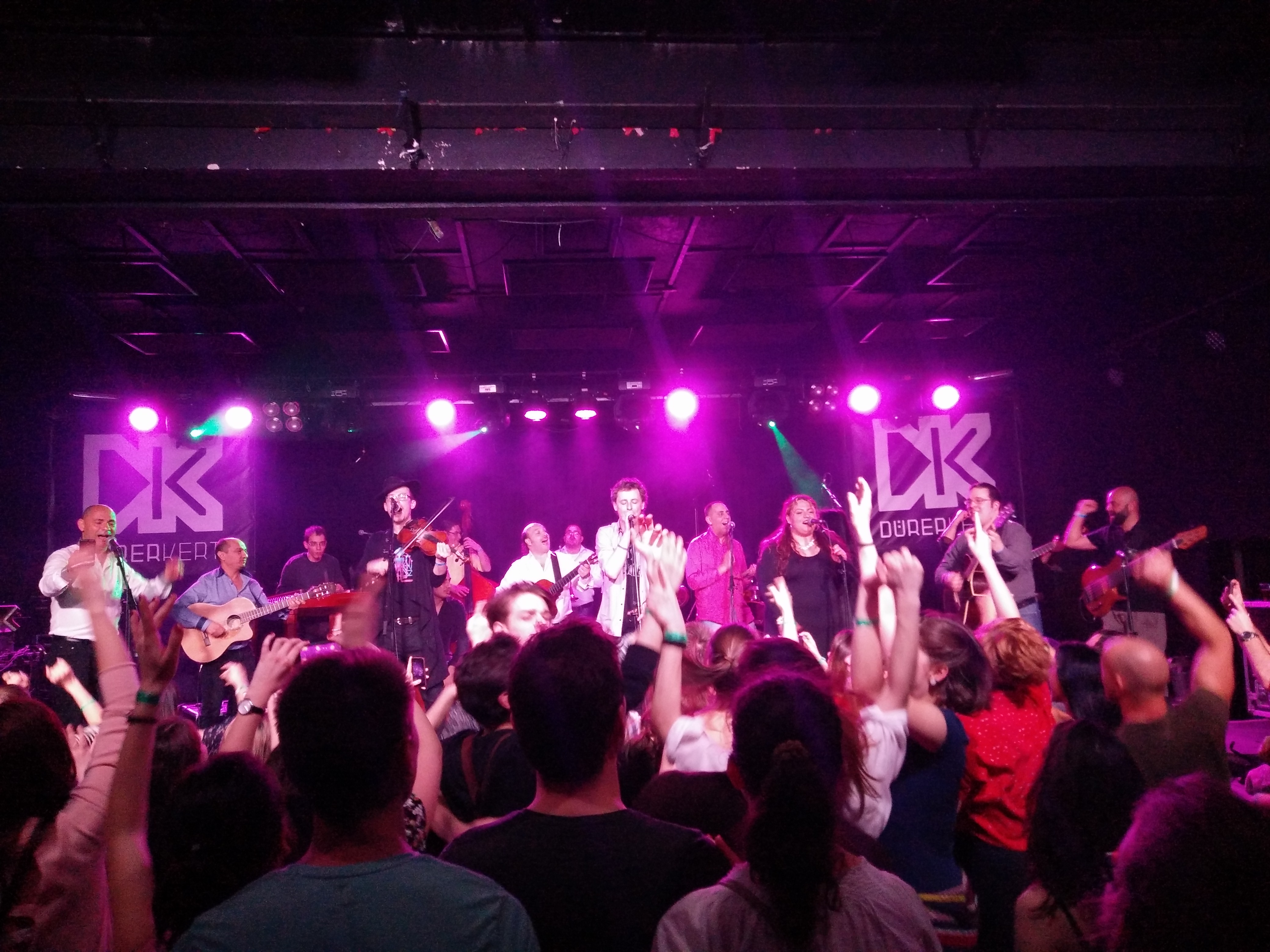 A koncert végén néhány számot közösen játszottak az est második fellépőjével, az Oláh Gipsy Beats-szel. A színpad dugig volt, alig fértek el rajtuk a zenészek, de a hangulat csak fokozódott.