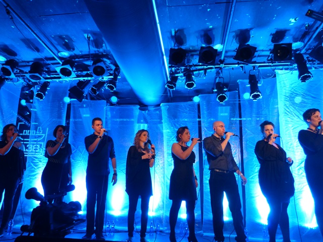A Budapest Voices 12(+1) tagú a capella együttes, akik mostanában ünneplik egyéves szülinapjukat. A csapat kvázi „anyukája” Warnusz Zsuzsa, aki egyébként a szemfüleseknek ismerős lehet a decemberben feloszlatást bejelentő Emil.RuleZ! zenekar billentyűseként. (Én még mindig remélem, hogy ez nem volt komoly…) Zsuzsának köszönhetően sikerült a legkedveltebb magyar pop, rock, illetve underground slágereket „áthangszerelni” oly módon, hogy igazából nem is hiányoznak a fülünknek hangszerek. Az egyetlen kiegészítő a dobszekció, ami az alapot szolgáltatja, de ezen kívül minden más hang a 12 énekes torkából bújik elő. Az első feldolgozott dal a Tankcsapda Adjon az ég című gigaslágere vírusként terjedt az interneten, és azóta is nagy népszerűségnek örvend. Nem csoda, hogy a koncert is ezzel kezdődött. Azóta folyamatosan keresik a repertoárba építhető dalokat, és ennek köszönhetően olyan előadók szerzeményei kerültek a kezük közé, mint pl.: Amorf ördögök – Dunántúli sláger, Magashegyi Underground – Metróhuzat, Péterfy Bori & Love Band – Hajolj bele a hajamba, Kispál és a Borz – De szeretnék, Quimby – Autó egy szerpentinen, Anima Sound System – Csinálj gyereket, PASO – Hello Gagarin, Belmondo – Lesz, Volt, Van, Subscribe – Álomtégla, vagy a személyes kedvencem a Hiperkarma – Dob+basszusa.