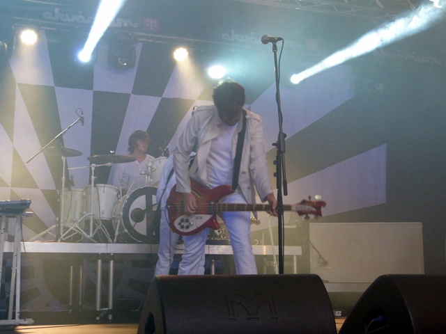 A szokásos angyali hófehér szettben felvonuló ifjak kezdetben még kissé enerváltnak tűntek, de egy-két dal után rájöttek, hogy kis közönség előtt is lehet ugyanolyan élvezetes egy koncert, mint a már megszokott fesztiválos tömegek előtt. Ennek megfelelően maguk is átkapcsoltak élvezős üzemmódba, és innentől kezdve elszabadult a pokol. Nem tudom, hogy a hátrébb állók mit tapasztaltak az egészből, de velünk folyamatosan kommunikáltak a fiúk. A frontember, Jamie Reynolds folyamatosan pásztázta az első sort dalolászás közben, és ha meglátta, hogy valaki vele együtt énekli az adott slágert, annak időnként külön gitárszólót is nyomott. Ezúton is köszi! ;)