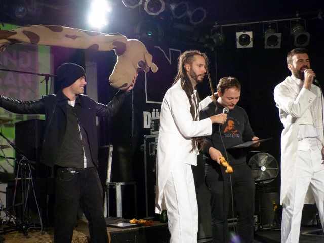 Humorban, iróniában és öniróniában, no meg elhajlásban nem volt hiány. De akadtak nagy félrelépések is. Többen bontották le a színpadot produkció közben, vagy csúsztak el a padlón, estek be a közönség közé vagy a színpad mögé, de őszintén remélem, hogy emiatt nem emelkedett az ügyeletes baleseti sebészet forgalma. A kedvencem mégis az a szerencsétlen fiú, aki az őrült bulizás közepette felmászott a színpadra, és megpróbált volna a közönségbe ugrani egy röpke szörfözésre, de nem a legjobb csoportot választotta, ugyanis amint elindult felénk, a körülöttem állók azonnal két oldalra húzódtak, egyenes utat biztosítva a srácnak a kijárat felé. Az egyetlen szerencséje, hogy nem hasassal próbálkozott, mert annak valóban csúnya vége lett volna, így maximum a büszkesége bánta, hogy a nagy lendületnek egy csekély két lábra érkezés lett az eredménye.