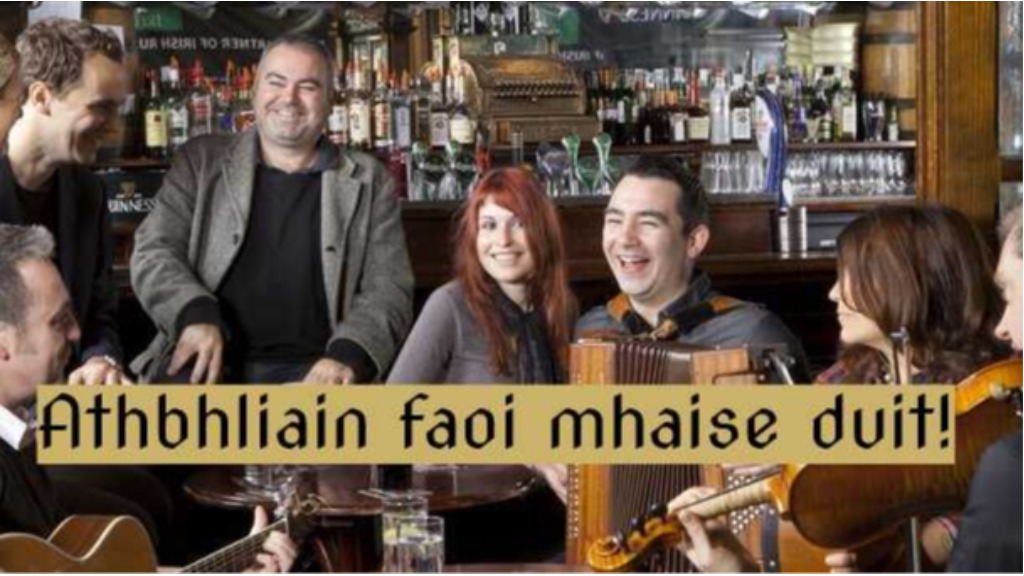 Hogy kicsit mi is írek legyünk – hátha hatással lesz a kívánságra –, a képen olvasható szöveg annyit, jelent: boldog új évet. Mire Magyarországon is bevezetik a feltétel nélküli alapjövedelmet a művészek számára, megtanuljuk kimondani is. Írországban amúgy éjfélkor kinyitják a hátsó ajtót, hogy kiengedjék az óévet, majd kinyitják a bejárati ajtót, hogy köszöntsék az új évet. Egy ajtó esetén gyors mozdulatokkal kell megoldani... :)