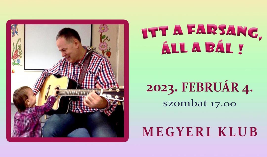 Gyerekkoncert Hevesi Imrével, minden gyerkőc szeretett Imi bácsijával, aki gitáron farsangi hangulatot varázsol közénk, és ismert gyermekdalokkal szórakoztatja ifjú közönségét.