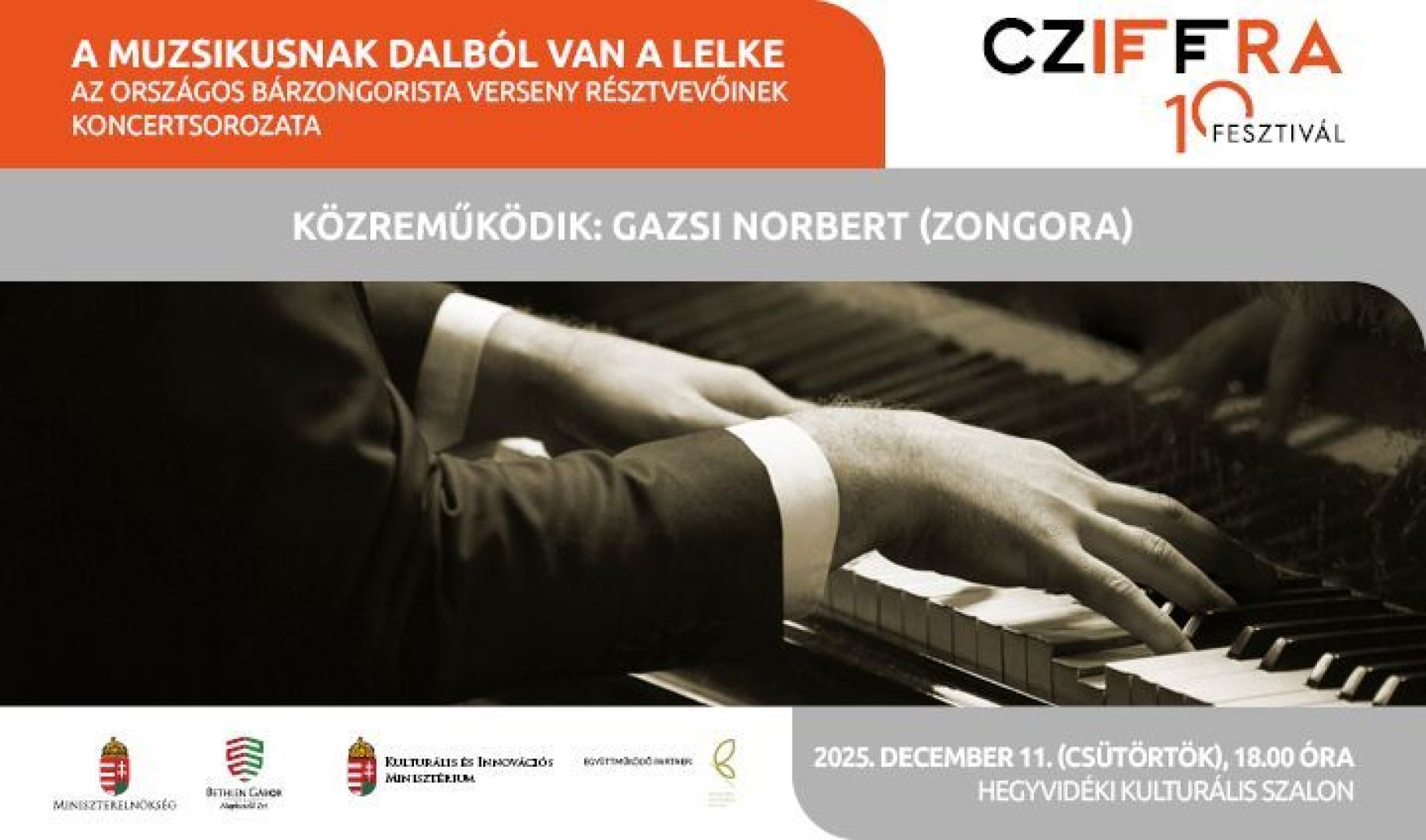 Utolsó estjéhez érkezik december 11-én a Cziffra Fesztivál kedvelt bárzongorista sorozata. A három alkalmat felölelő őszi ciklus keretében a Cziffra György emlékére életre hívott 2024. évi Országos Bárzongorista Verseny kiváló résztvevői mutatkoznak be a Hegyvidéki Kulturális Szalonban. Kellemes társaság, egy zongora, egy zongorista és megannyi elfeledettnek hitt, vagy épp ma is sokat hallgatott sláger egy „füstös-mámoros estén”. A pesti éjszaka legendás kávézóiban és mulatóiban egykor kimagasló előadóművészek léptek fel, többek között Cziffra is jó néhány évet játszott bárzongoristaként. Mára ez a műfaj már csak igen kevés helyen elérhető, ezért is fogadja a közönség mindig oly nagy lelkesedéssel. Az est fellépője ezúttal a verseny második helyezettje, Gazsi Norbert lesz. Széles repertoárjában a filmzene, könnyű klasszikusok, bárzene és popzene éppúgy megtalálható, mint az ismert operett részletek, jazz és örökzöld slágerek. A műsor és Gazsi Norbert virtuóz előadásmódja garantálja a közönség számára az önfeledt szórakozást.