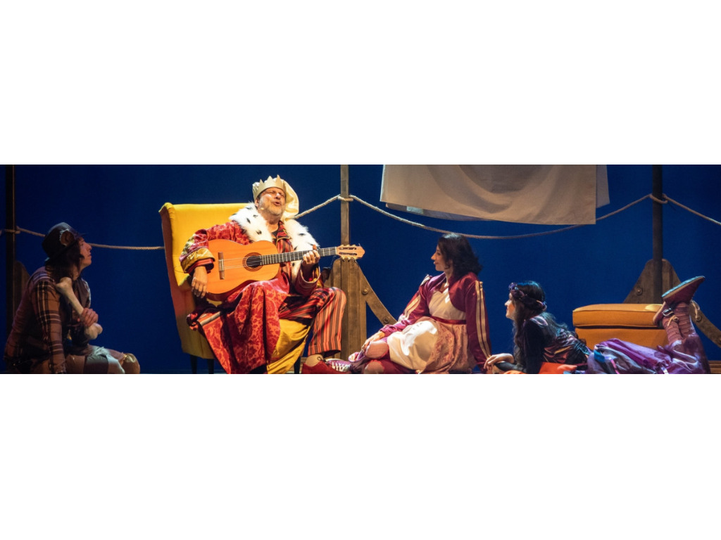 Az Égigérő muzsika a hétköznapjainkban jelenlévő szorongásokra adott jókedvű, szellemes, zenés, dalos, táncos válasz. A gyermekét váró királynét szórakozott és szórakoztató környezete segítség helyett mintha inkább akadályozná leendő anyai teendőiben. Vagány karakterek, meglepő helyzetek, sziporkázó nyelvi humor, izgalmas kalandok palotán belül és kívül. Sőt a végén az is kiderül, hogy a jó zene, no meg a minőségi élcek igenis erősítik az immunrendszerünket.