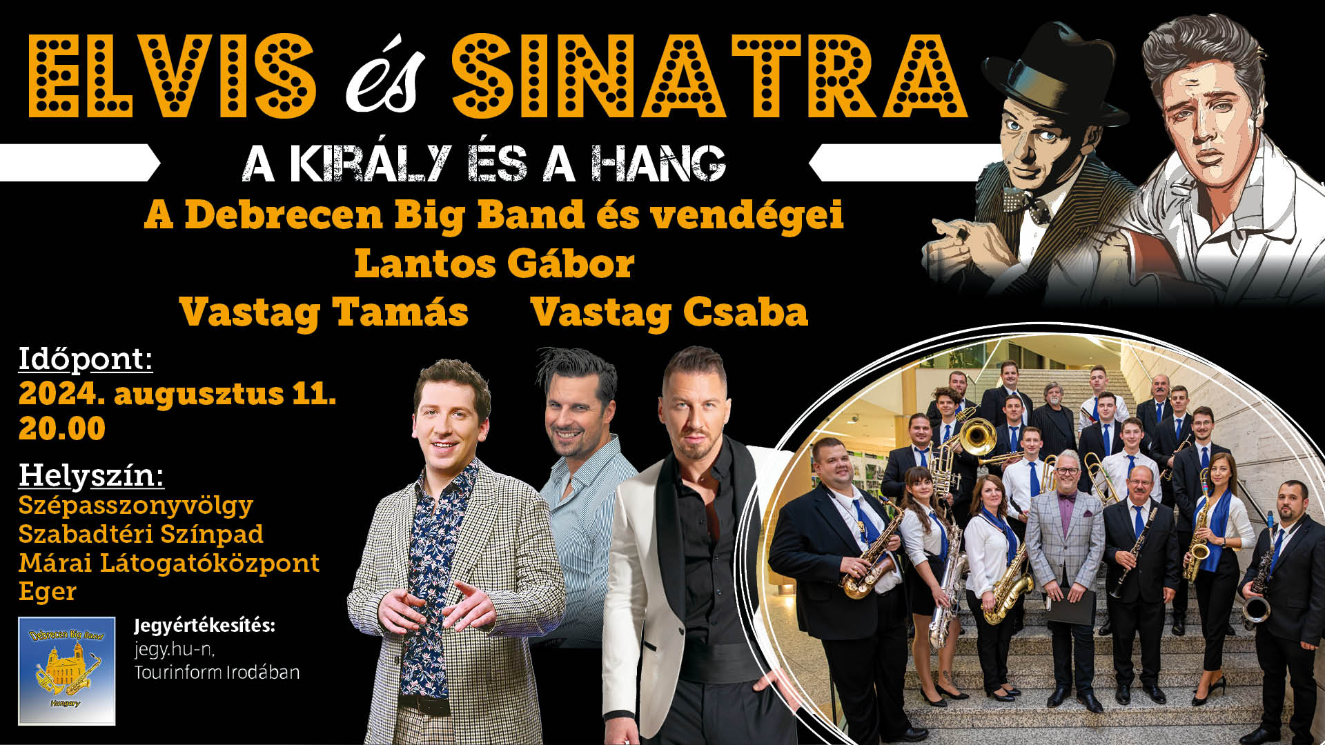 Nyári koncertjeink sorában, egyedülálló produkció a Egerben, a szépasszonyvölgy-i Márai Szabadtéri Színpadon kerül megrendezésre, az Elvis és Sinatra -A Király és a Hang, Debrecen Big Band koncertje.