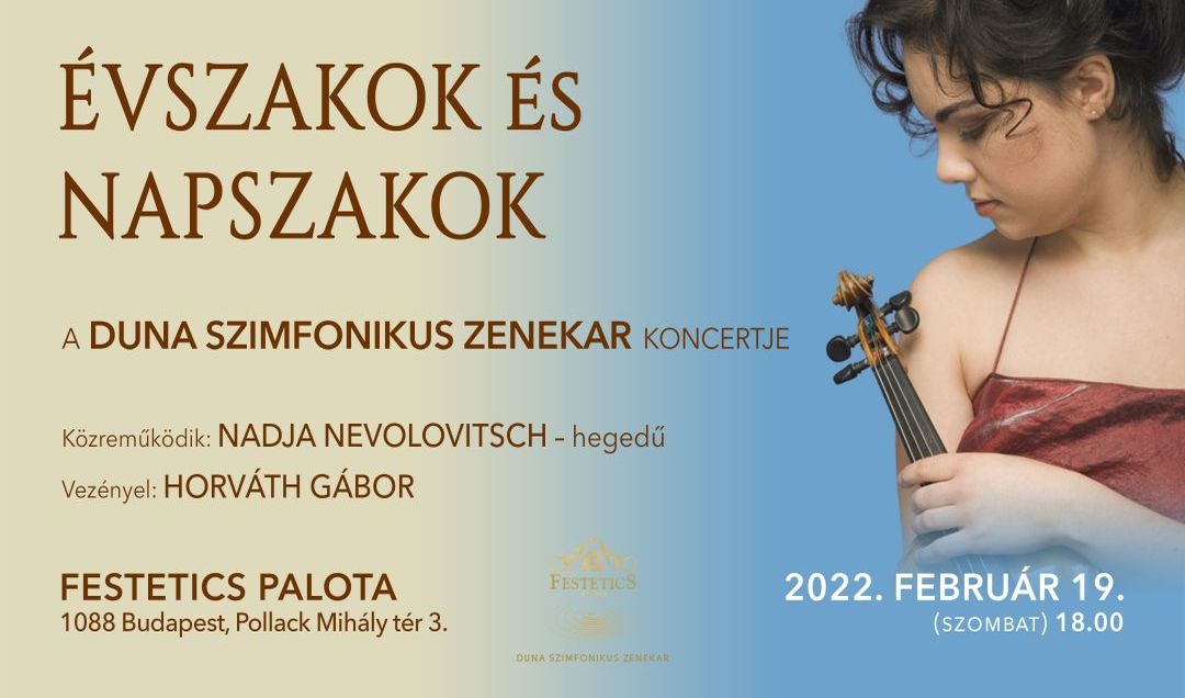Gyönyörű környezetben, a Festetics Palota tükörtermében Nadja Nevolovitsch hegedűművésznő és a Duna Szimfonikus Zenekar elegáns, kifinomult játékstílusa várja Önt.