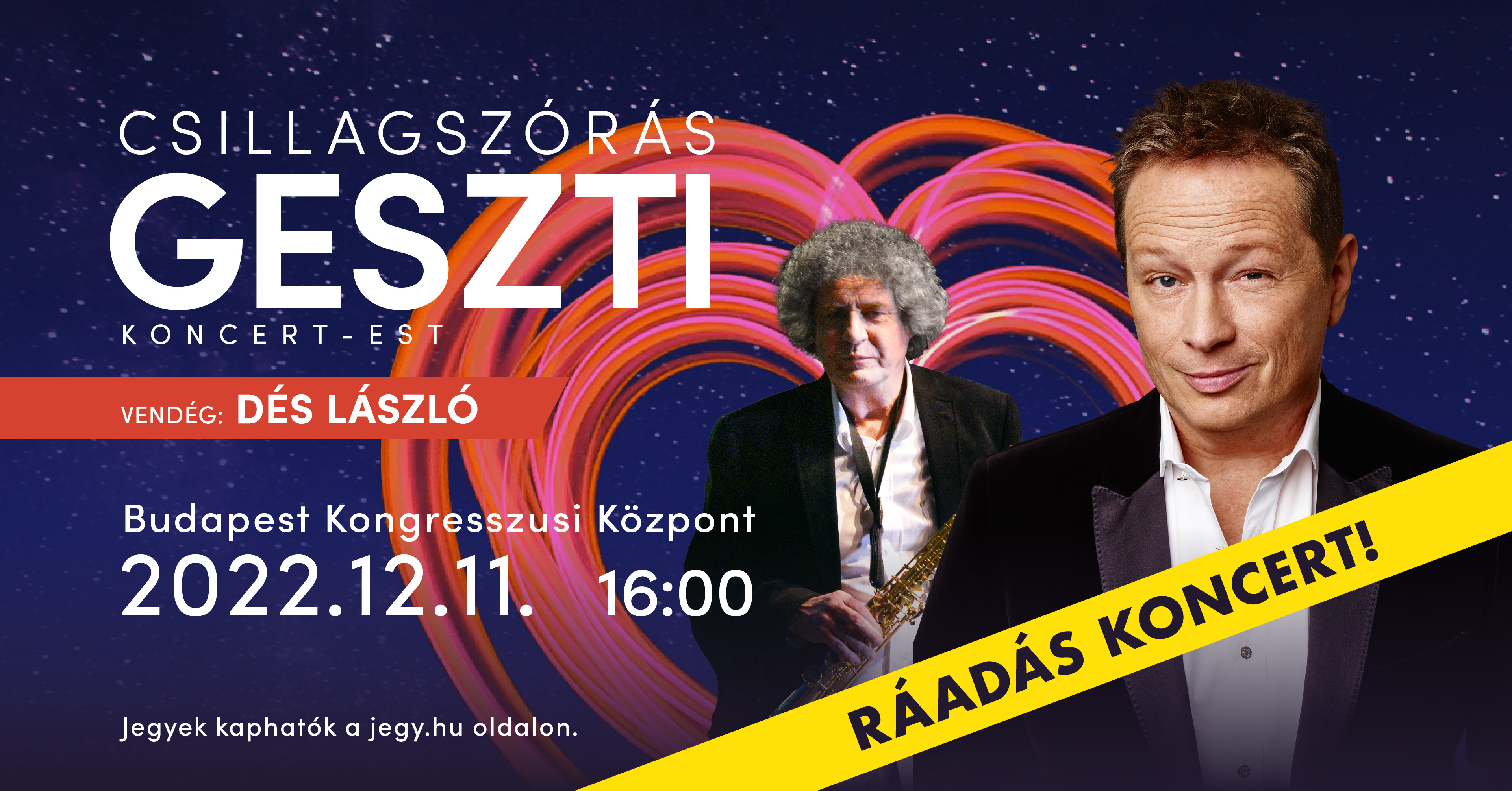 Fülbemászó, korszakos slágerei mellett olyan szívmelengető dalokat is előad, mint a A Pál utcai fiúkból ismert Mi vagyunk a grund, vagy a tavaly karácsonyra írt, hittel teli Csillagszórás. A közeledő ünnepre hangolt est különlegessége, hogy Geszti legsikeresebb szerzőtársa, Dés László is színpadra lép, és a két barát több olyan duettet is megszólaltat majd, amelyek eddig még így nem hangzottak el. Az eredeti Jazz+Az zenészeivel muzsikáló Geszti most is kinyitja a rá jellemző „szövegládát”, hogy a szokásosnál bőségesebb, humoros vagy éppen elgondolkodtató kommentárjaival, történeteivel különleges estét teremtsen a világ bizonytalanságából kikapcsolódni vágyó közönség számára.