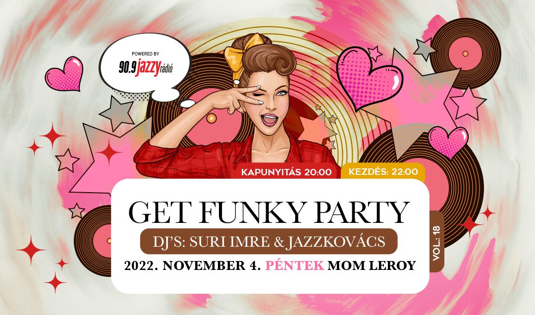 November 4-én folytatódik a funky-őrület a Mom Leroy Étteremben. A lemezjátszók mögött a két DJ, Suri Imre és Jazzkovács László gondoskodnak arról, hogy a táncparkett az októberi bulihoz hasonlóan megteljen.