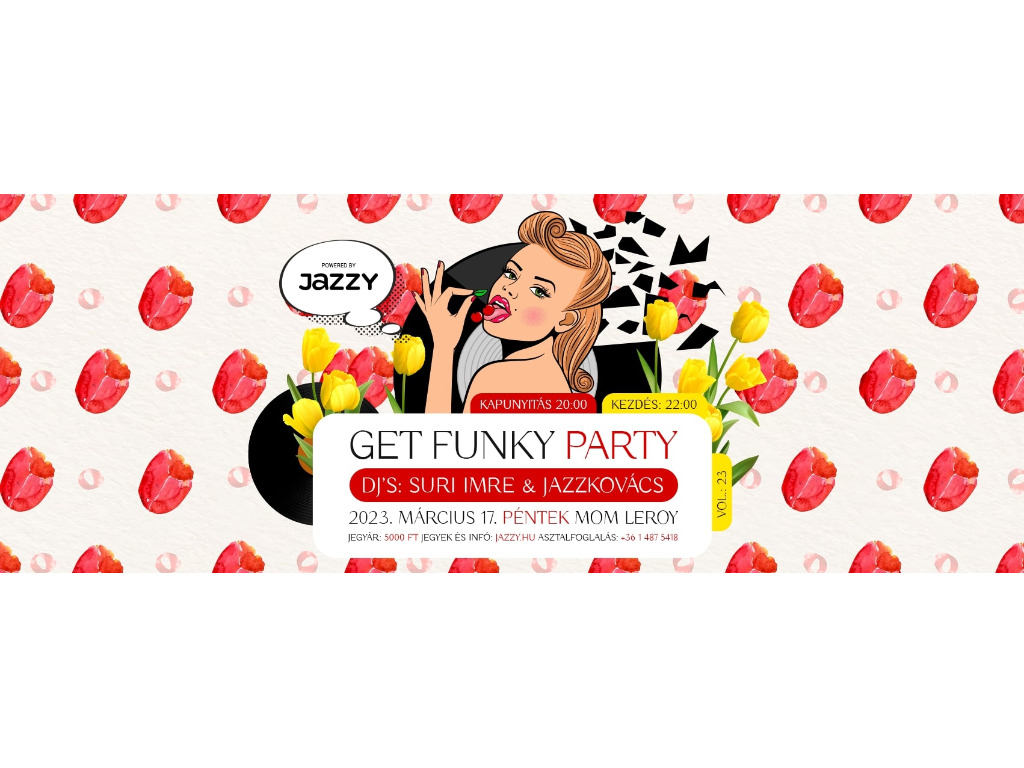 23. Get FUNKY Party a MomLeroyban és a Localinoban. A DJ-pultban Suri Imre és Jazzkovács László. A legjobb Funky, Soul és klasszikus diszkó zenék.