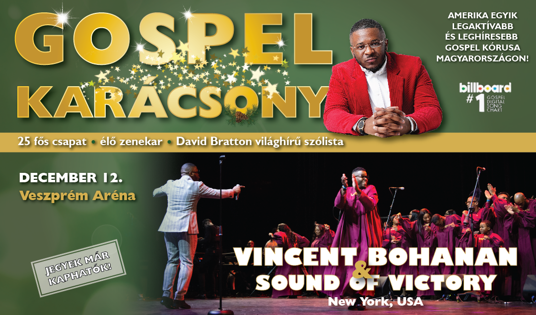 Európai turnéjának állomásaként Veszprémbe látogat Amerika egyik legaktívabb és leghíresebb gospel kórusa a Sound of Victory. Vincent Bohanan new york-i Gospel kórusa először jön Magyarországra, a Veszprém Arénába látogatók elsők között lehetnek részesei e páratlan karácsonyi élménynek.