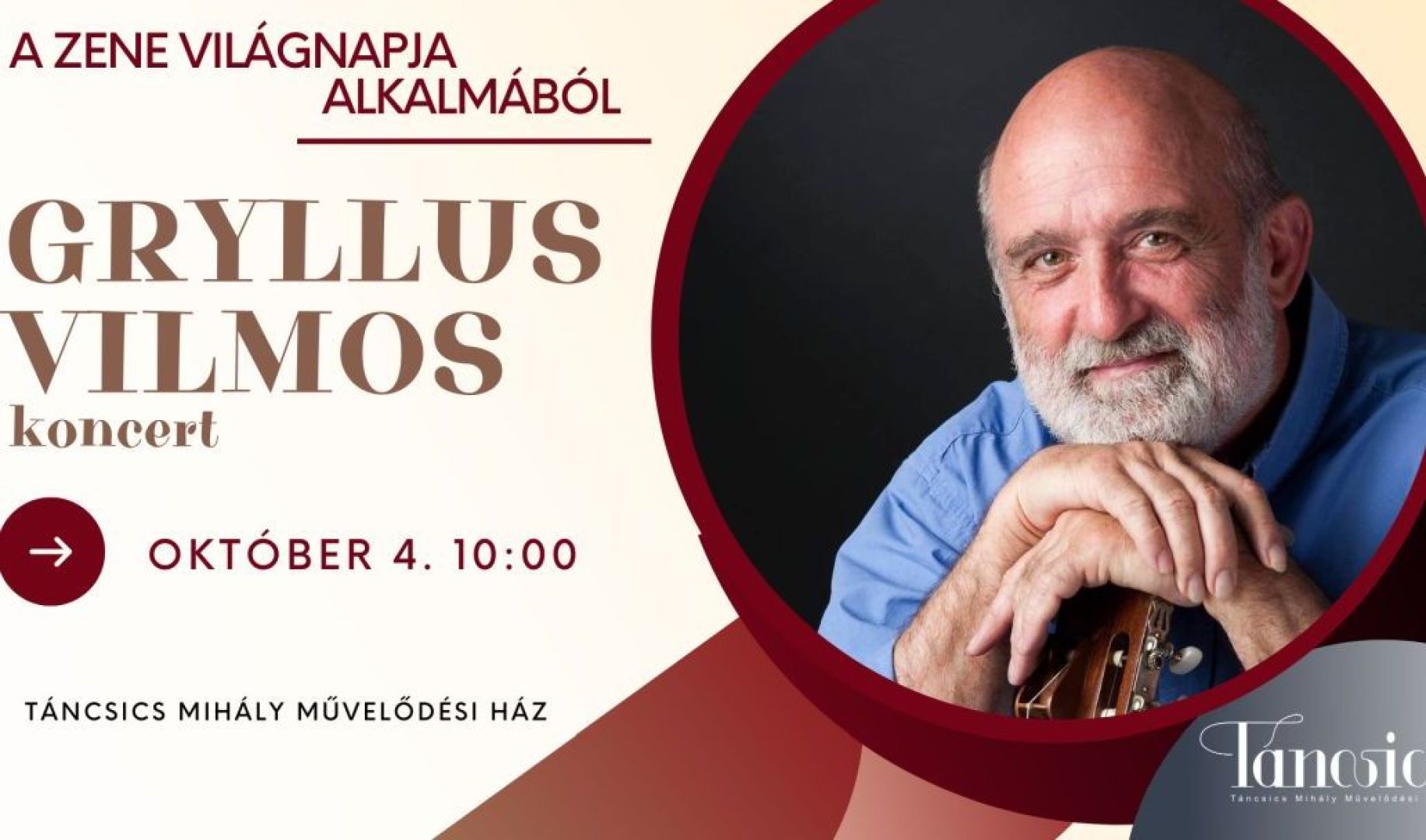 A zene világnapja alkalmából színpadunkon a gyerekek, családok egyik nagy kedvence: GRYLLUS VILMOS lesz a vendégünk. Belépő 2 éves kor alatt ingyenes
