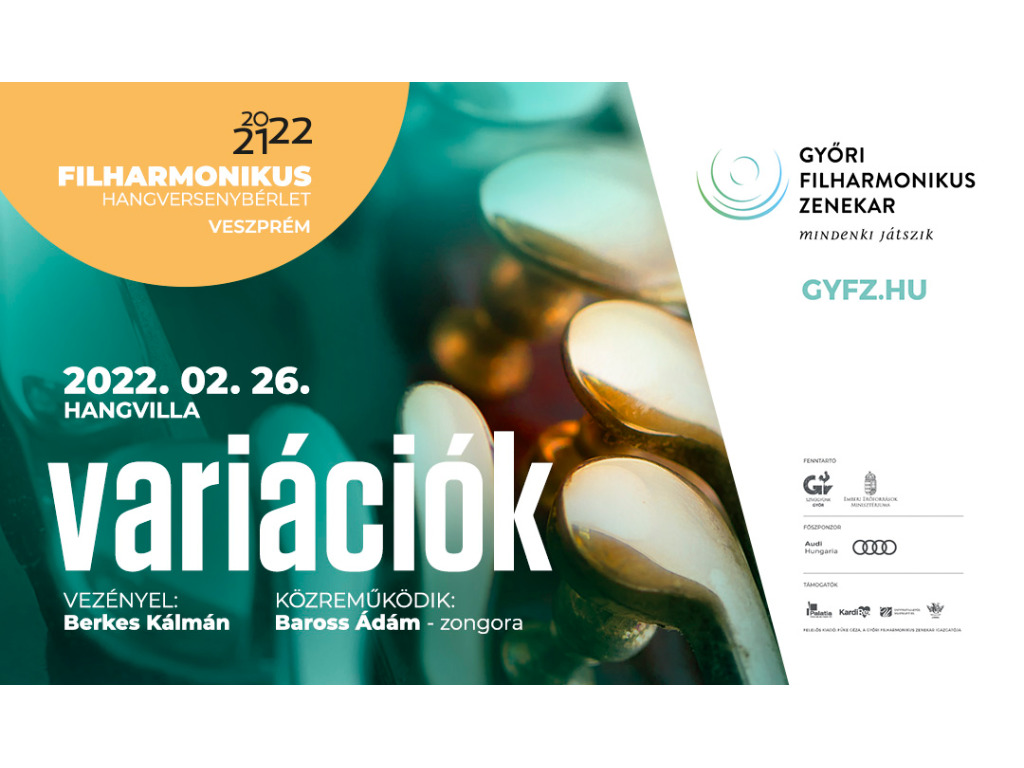 A Dohnányi-variációk virtuóz szólószólamát a győri illetőségű, ígéretes tehetségű fiatal zongorista, Baross Ádám játssza, a hangverseny dirigense Berkes Kálmán lesz.
