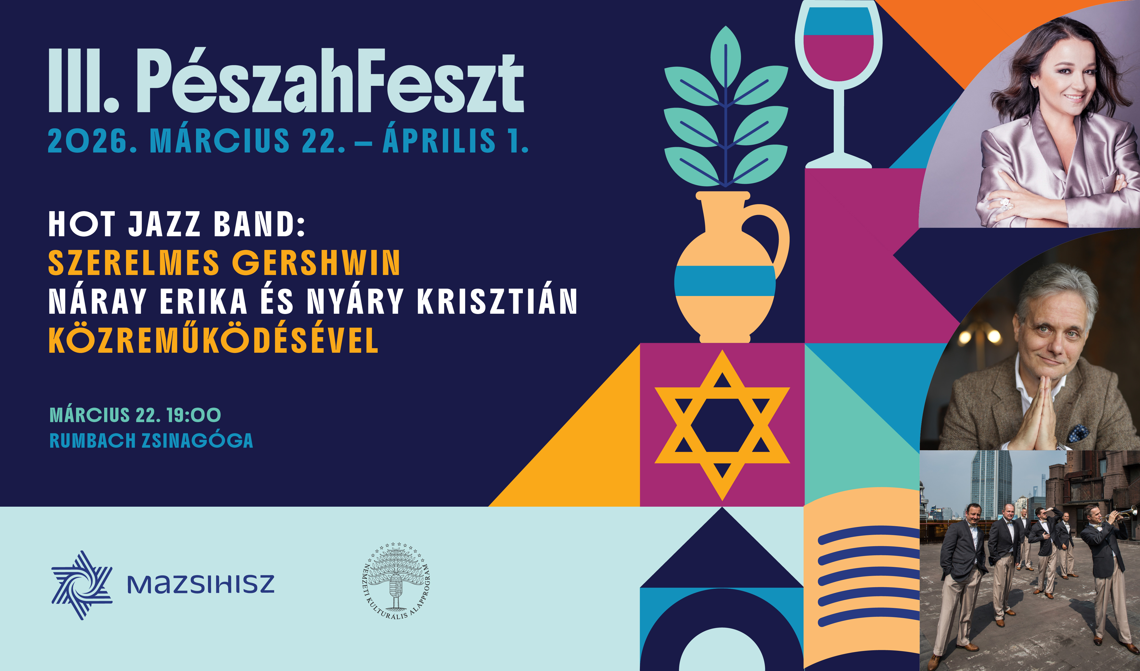 2026. március 22-én, vasárnap 19 órakor a Rumbach zsinagógában George Gershwin zenéje kerül a középpontba. A III. Pészah Fesztivál nyitókoncertjén a Hot Jazz Band „Szerelmes Gershwin” című műsora a jazz aranykorának hangulatát idézi meg. Az együttes több mint négy évtizede a hazai jazzélet meghatározó szereplője, amely hiteles, mégis friss megszólalásban kelti életre a klasszikus amerikai jazz korszakának zenéjét. Az esten a jazz és a klasszikus zene határán született ikonikus darabok csendülnek fel, felvillantva a múlt század első felének pezsgő, elegáns világát.