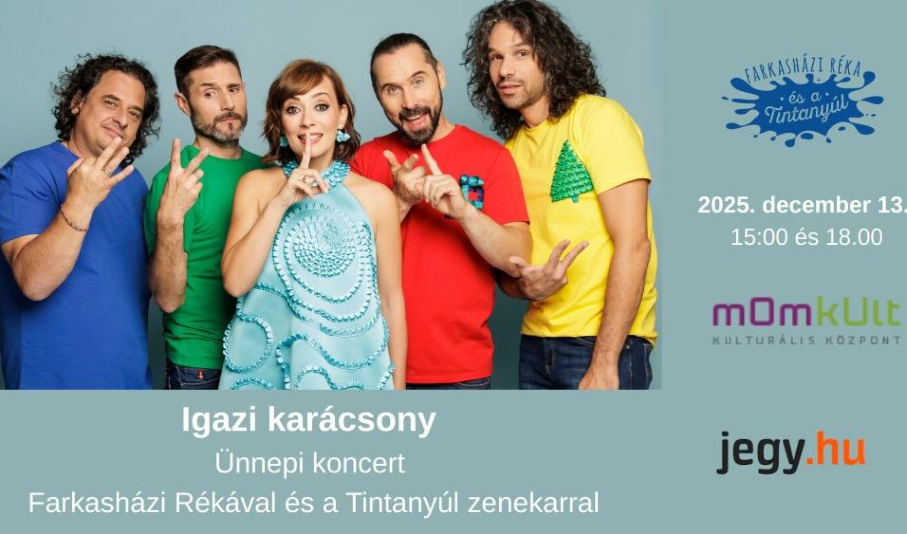 Az ünnep akkor válik igazivá, amikor a szívekben is kigyúlnak a fények. Farkasházi Réka és a Tintanyúl zenekar idén is a MOM Kulturális Központ színpadán varázsol meghitt, zenével teli karácsonyt – kicsiknek és nagyoknak egyaránt. Az Igazi karácsony című album és a zenekar további karácsonyi dalai, meglepetések, újdonságok és az ünnep legszebb pillanatai várják a közönséget.