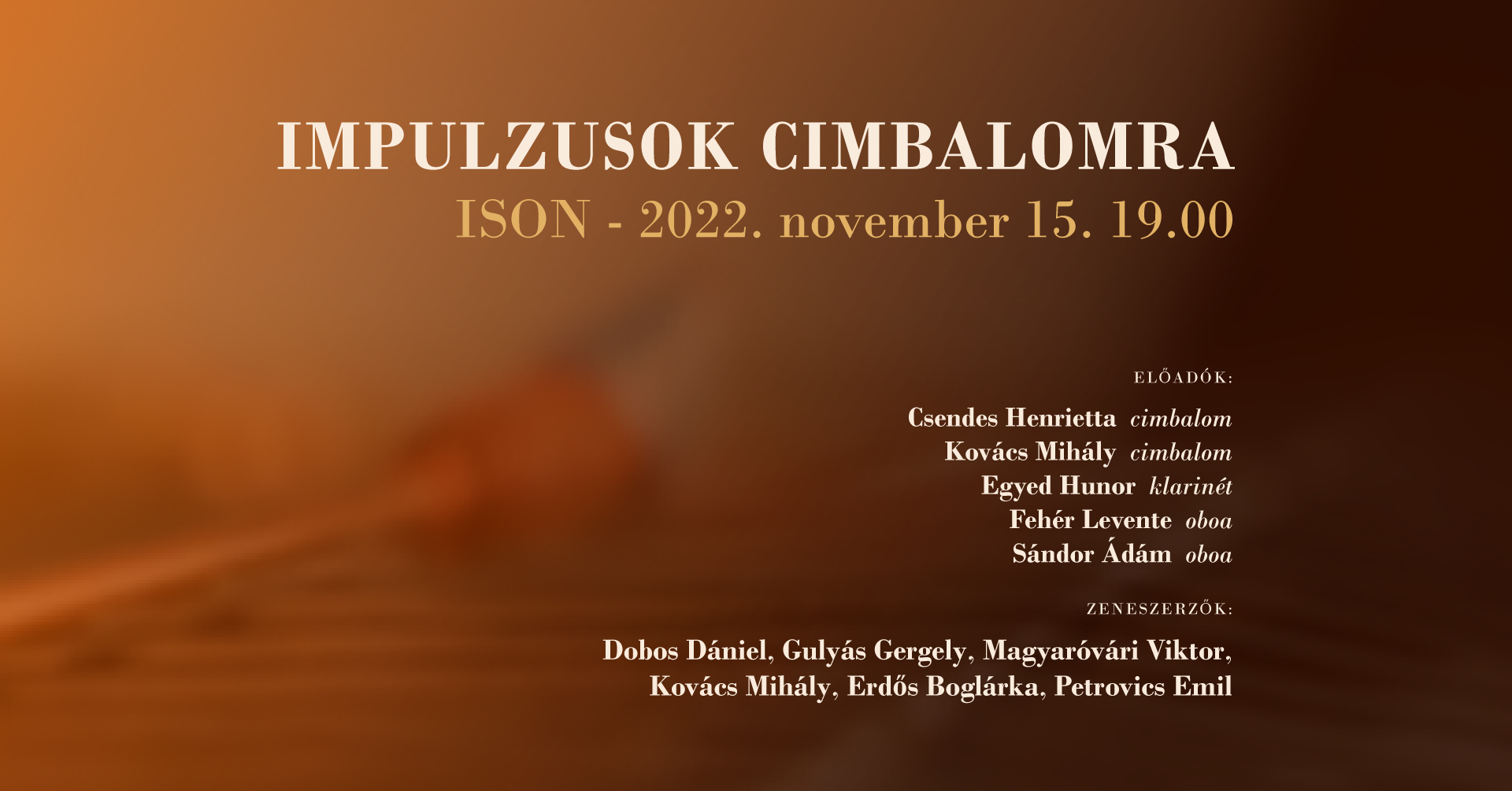 Csendes Henrietta és Kovács Mihály már 7 éve intenzíven dolgozik együtt kamara felállásukban. Egy baráti beszélgetés során pattant ki fejükből ennek a koncertnek és repertoárjának ötlete. Mivel az eredeti cimbalom repertoár elég szerény, ezért elhatározták, hogy színesíteni fogják a szeretett hangszerükön játszható darabok mennyiségét. Szerencsére baráti körükben rengeteg zeneszerző vállalkozott azon nemes feladatra, hogy erre a nem mindennapi hangszerre komponáljon új műveket. A koncerthez csatlakoznak hozzájuk meghívott előadóművészek is, akikkel már évek óta zenélnek együtt és vesznek részt közös projektekben.