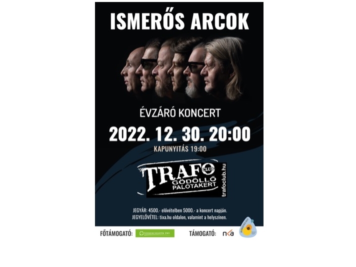 Az őszi lemezbemutató koncertek után, az Ismerős Arcok zenekar egy családi hangulatú klubkoncerttel zárja az idei esztendőt. Légy részese a közös évbúcsúztatónak a speciális atmoszférájú gödöllői Trafó Club-ban.