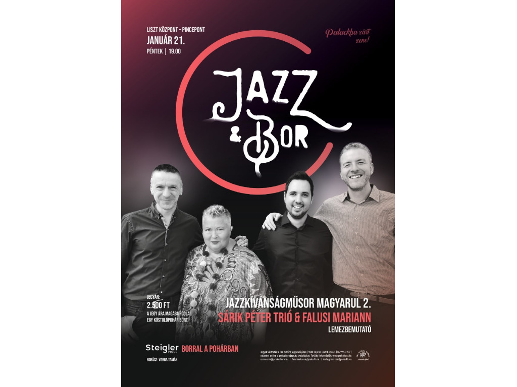 A Magyar Kultúra Napja előestéjén magyar slágerek jazz-re hangolva a Sárik Péter Trióval és Falusi Mariannal és persze borral!