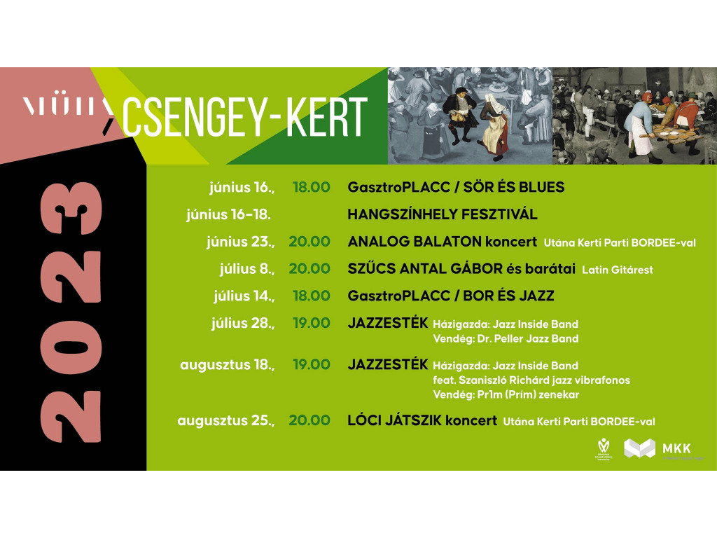 A Művészetek Háza új programhelyszínt avat június 16-án. A Csengey utca 2. szám alatt, a Művészetek Házával szemben, az út túloldalán (a Szentpáli iskola hajdani épületében kialakított új Művészeti Központ udvarán) megnyílik a MÜHA Csengey-kert, ahol a nyár folyamán, egészen augusztus végéig számos érdekes és különleges programmal várjuk az érdeklődőket.