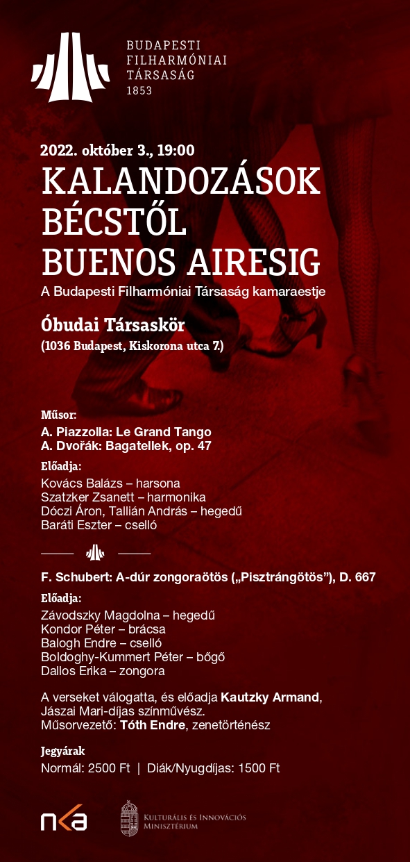 A Budapesti Filharmóniai Társaság kamaraestje, Kautzky Armand, Jászai Mari-díjas színművész közreműködésével.