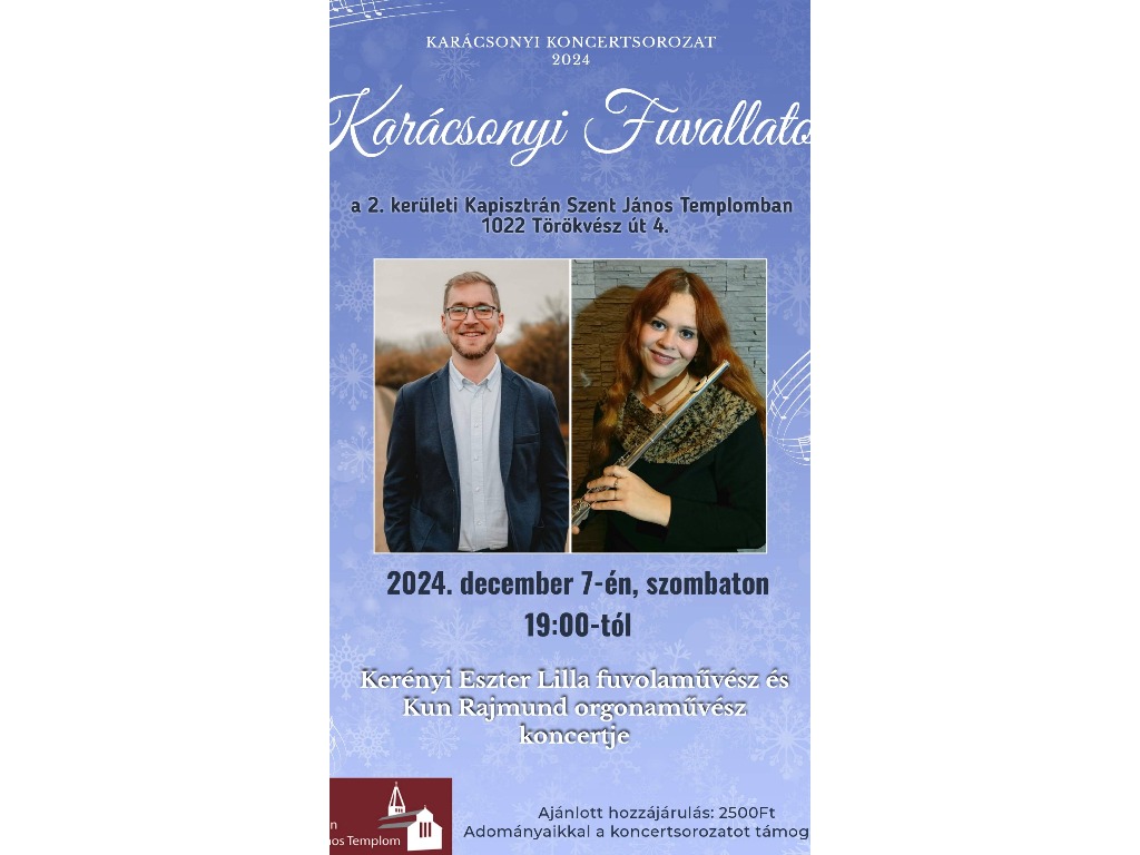 Kerényi Eszter Lilla fuvolaművész és Kun Rajmund orgonaművész karácsonyváró koncertje ❄
